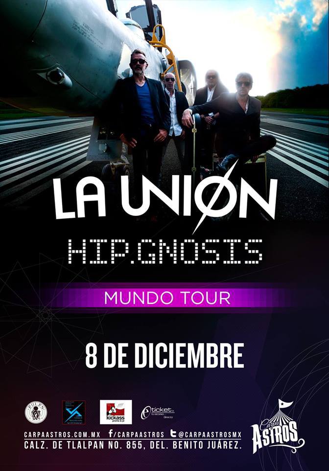Una de las bandas emblemáticas del rock en español, La Unión regresan a nuestro país para cerrar su gira titulada «Tour Hip.Gnosis», la cual será este 8 de diciembre en la Carpa Astros, la cual se inicio también en nuestra ciudad el Teatro de la Ciudad Esperanza Iris.