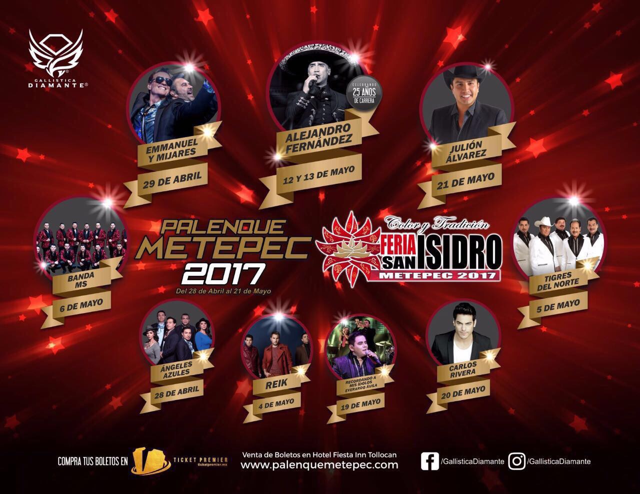 La empresa Gallística Diamante, una de las más sólidas, dentro de la organización de los principales Palenques en México, ha dado de nuevo la sorpresa al meter un cartel de lujo para el Palenque que se realizará dentro del marco de la Feria de San Isidro, Metepec 2017, del 28 de abril al 21 de mayo.