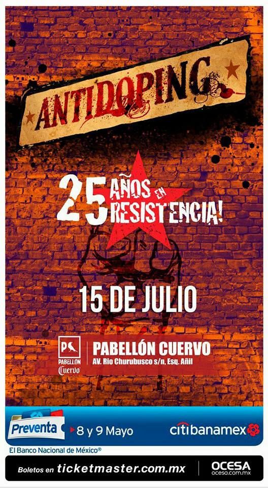 Antidoping celebra 25 años, siendo una de las bandas pioneras del reggae nacional, naciendo en Coyoacán en 1992 siendo música callejera trascendieron siempre con un objetivo buscar la paz, el respeto y la tolerancia.