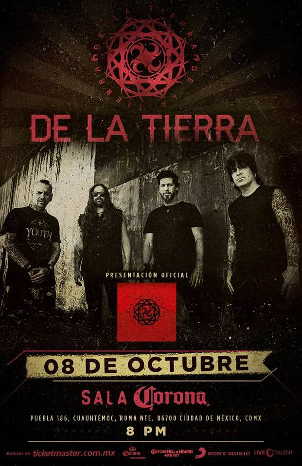De La Tierra nos presenta su nueva produccion titulada «II», un disco aue vale la pena escuchar y más en vivo, ellos se presentarán el próximo domingo 8 de Octubre a partir de las 20:00 horas en la SALA Corona, teniendo como bandas abridoras a los mexicanos Pressive, Lack of Remorse y MATHERYA.