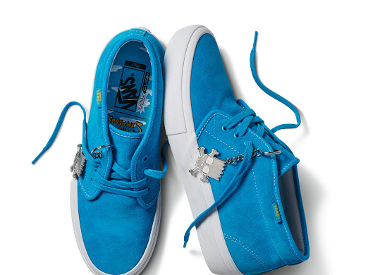 El surtido de calzado se completa con ocho estilos más que rinden homenaje a los queridos personajes de Simpson. Moe y las Bouviers ocupan los colores de Old Skool mientras Scratchy adquiere un estilo Era lleno de dibujos animados. Lisa aparece en un Sk8-Hi lavanda, mientras que el Sr. Plow reside legítimamente en un estilo Sk8-Hi MTE. Completan la colección de calzado un Slip-On Pro de bloque de color aprobado por el skate.