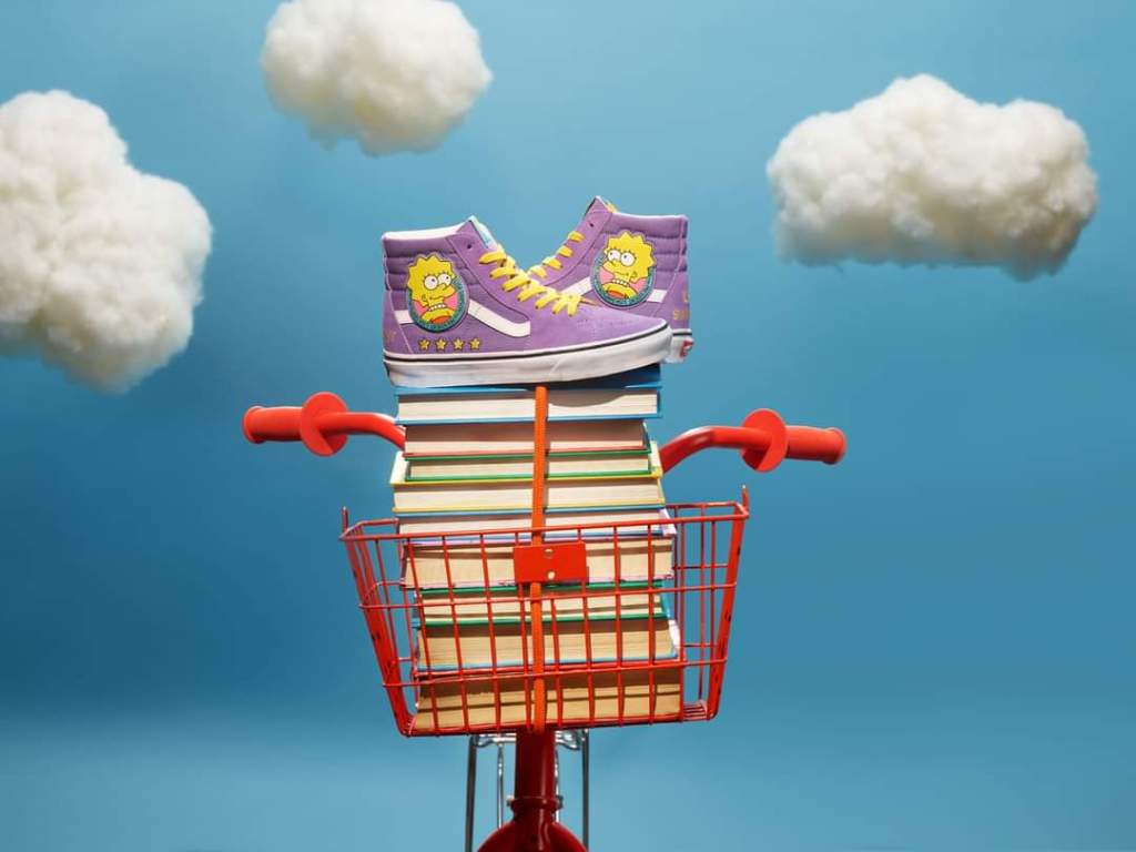 Con la línea de ropa de la colección, los fanáticos del programa encontrarán una variedad de estilos para mujeres y hombres. El fleece de Lisa es en bloque de color morado con mangas de raglan y un brillante “Lisa Simpson for President” en la espalda y pecho. La mochila Simpsons Check incluye el icónico estampado de cuadros de Vans en amarillo inspirado en Los Simpsons, con primeros planos de la cara de Lisa y un parche con el logotipo de goma en el bolsillo frontal con cierre. El look de Lisa se completa con una playera de manga corta «Lisa 4 Prez» combinada con un sombrero a juego.