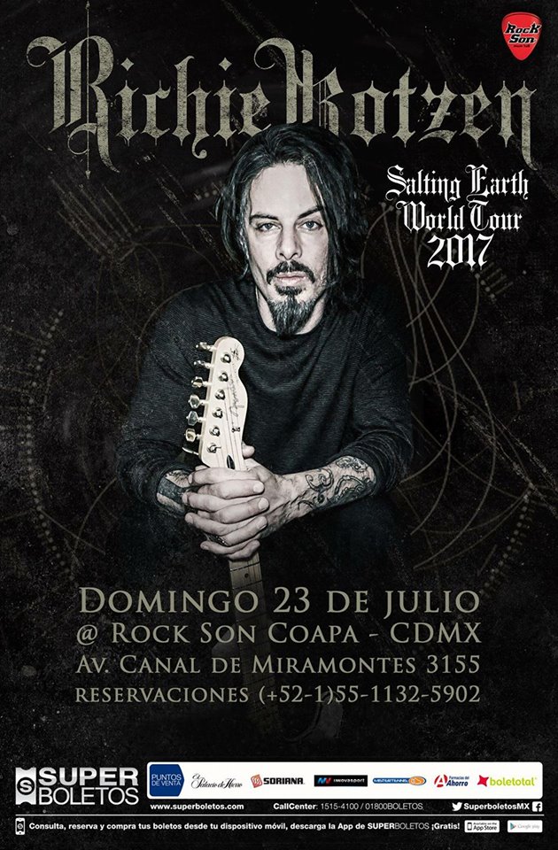 Richie Kotzen regresa a nuestro país pero esta vez sin The Winery Dogs, llega a dar una catedra de su excelente voz y su extraordinaria manera de tocar la guitarra, en un único concierto que realizará en uno de los lugares que se esta convirtidiendo en los favoritos del rock y este es el Rock Son Villa Coapa, para después partir a Guadalajara y Monterrey, como parte de su gira mundial «Salting Earth World Tour 2017».