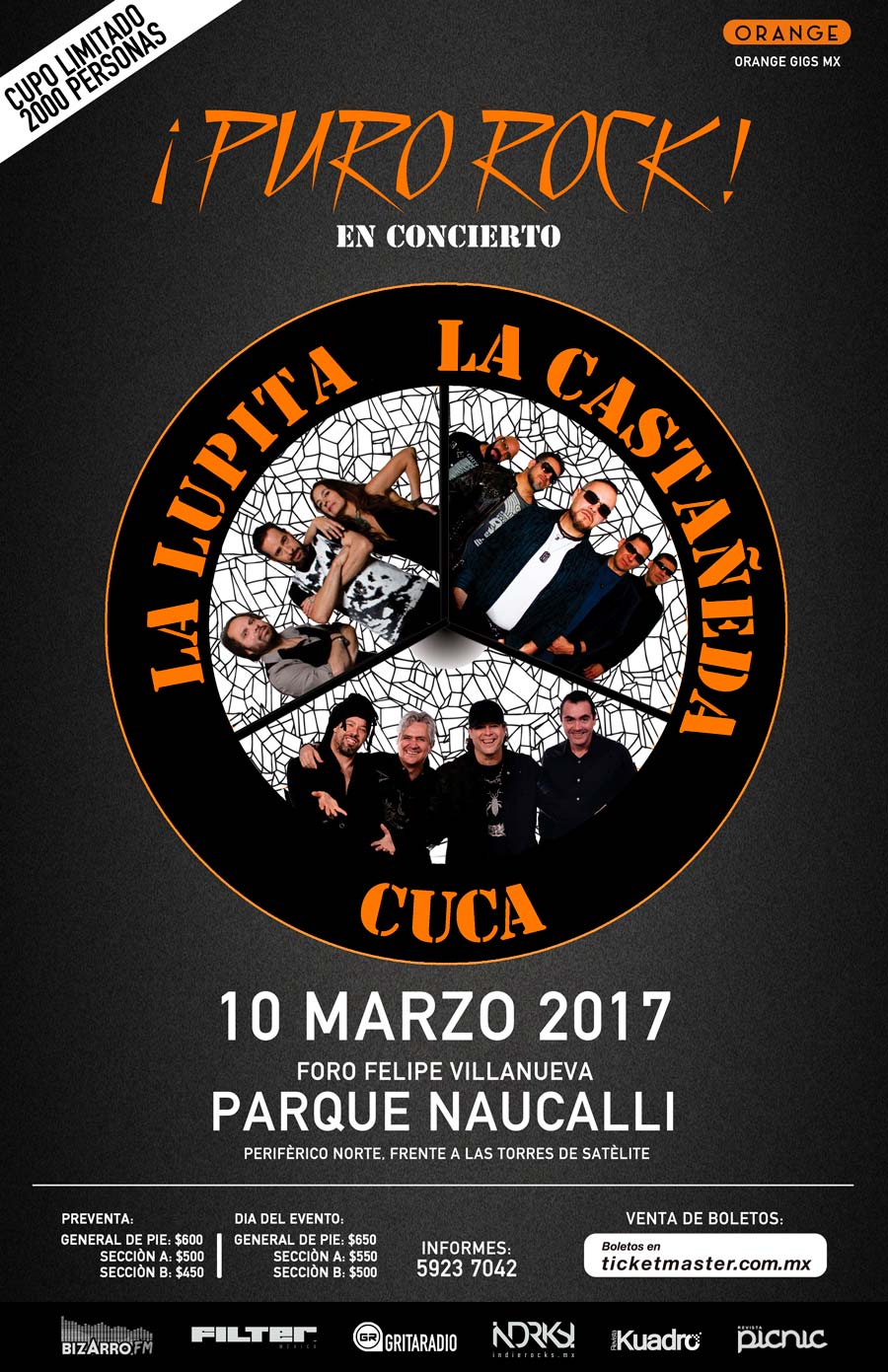 Tres bandas emblemáticas de nuestro rock nacional, estarán juntas en este festival llamado «Puro Rock» a realizarse este 10 de marzo a partir de las 20:00 hrs.