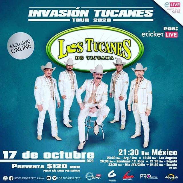 Los Tucanes de Tijuana llegarán a todos los hogares a través de su concierto online dentro de su gira «Invasión Tucanes 2020», ellos son una de las agrupaciones del regional mexicano con mayor proyección a nivel internacional.